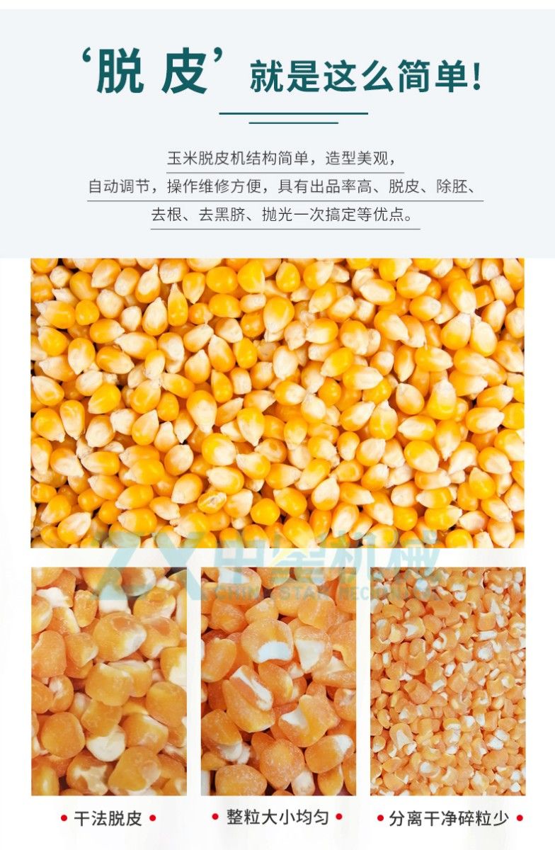 玉米脫皮拋光機(jī)采用新型玉米脫皮技術(shù),能一次性對(duì)玉米完成簡單的清理、脫皮、除胚芽、去根基、去黑點(diǎn)、拋光等工序。是農(nóng)村、城鄉(xiāng)結(jié)合部對(duì)外加工、玉米制糝廠等糧食加工配套設(shè)備。